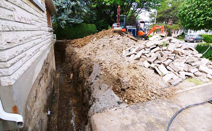 Excavation du Nord procède ensuite à l’installation du drain français, qui sera sans contredit rigide de 4 pouces de diamètre avec la norme BNQ série 500.