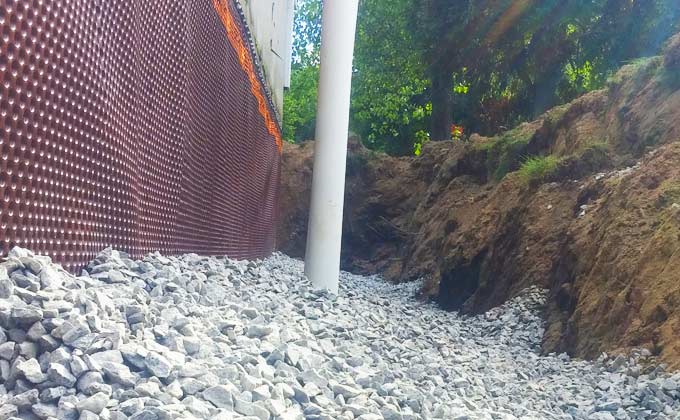 Constatation : le drain français est complètement inefficace et ne permet aucunement l’évacuation de l’eau autour de la fondation, exerçant progressivement une pression contre celle-ci, particulièrement lors des périodes de gel et dégel, ou de pluie abondante.