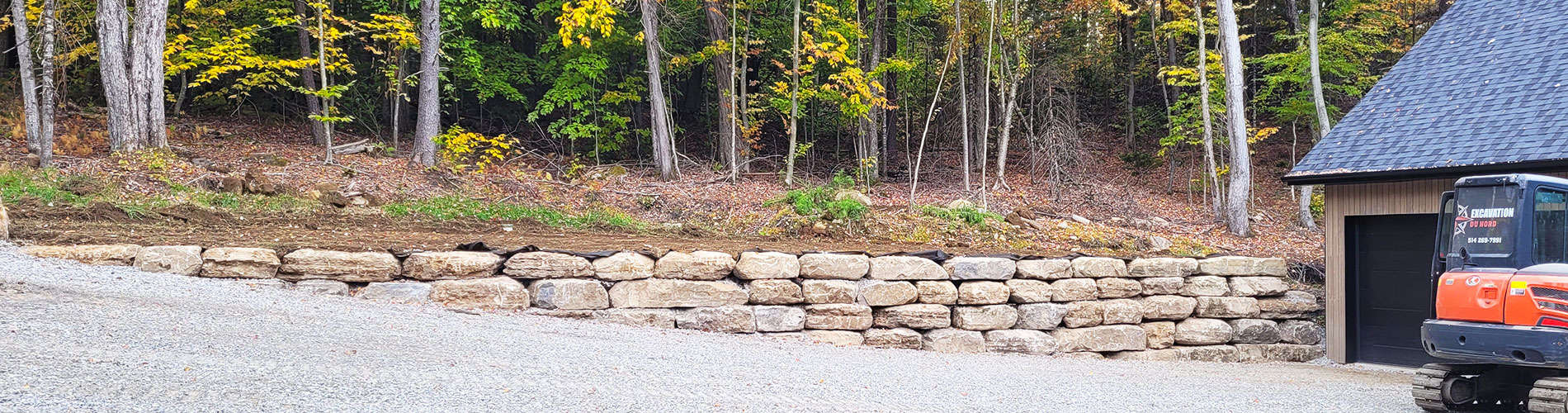 Excavation du Nord lui a proposé l’installation d’un mur de pierres naturelles sur le côté du stationnement, d’un drain français et revoir l’aménagement paysager de cette portion de son terrain. De plus, ce type de projet saura créer une belle harmonie entre l’espace du garage et l’ensemble de la propriété.